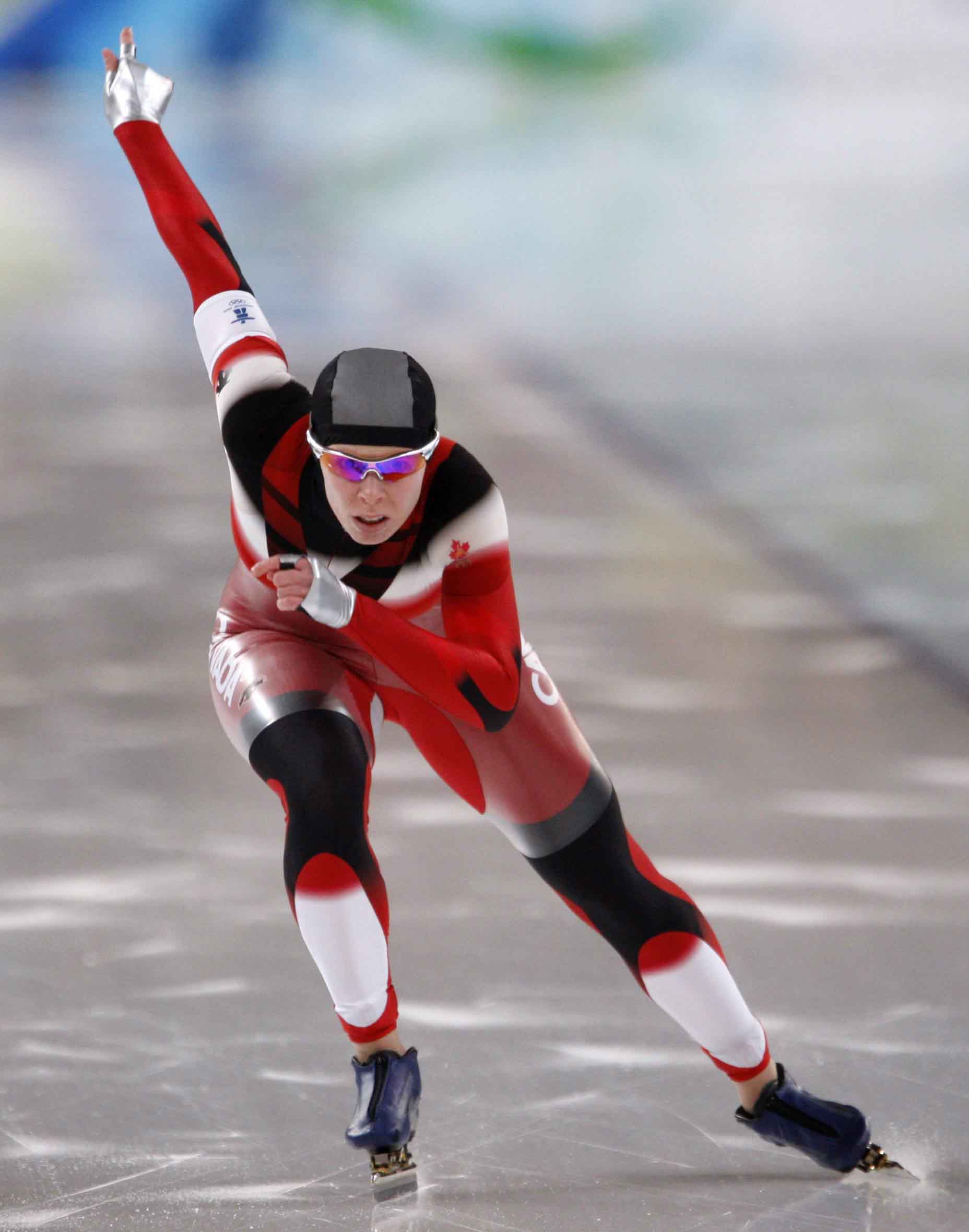 Canadian speed skater Clara Hughes races to bronze in the women’s 5000m event at the XXI Olympic Winter Games in Richmond, B.C., Wednesday Feb. 24, 2010. THE CANADIAN PRESS/Adrian Wyld