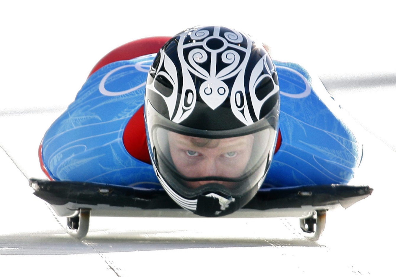 Canada’s Jon Montgomery celebrates winning a gold medal in the men’s skeleton competition at the Whistler Sliding Centre at the 2010 Vancouver Olympic Winter Games in Whistler, B.C., Friday, Feb. 19, 2010. THE CANADIAN PRESS/Jeff McIntosh