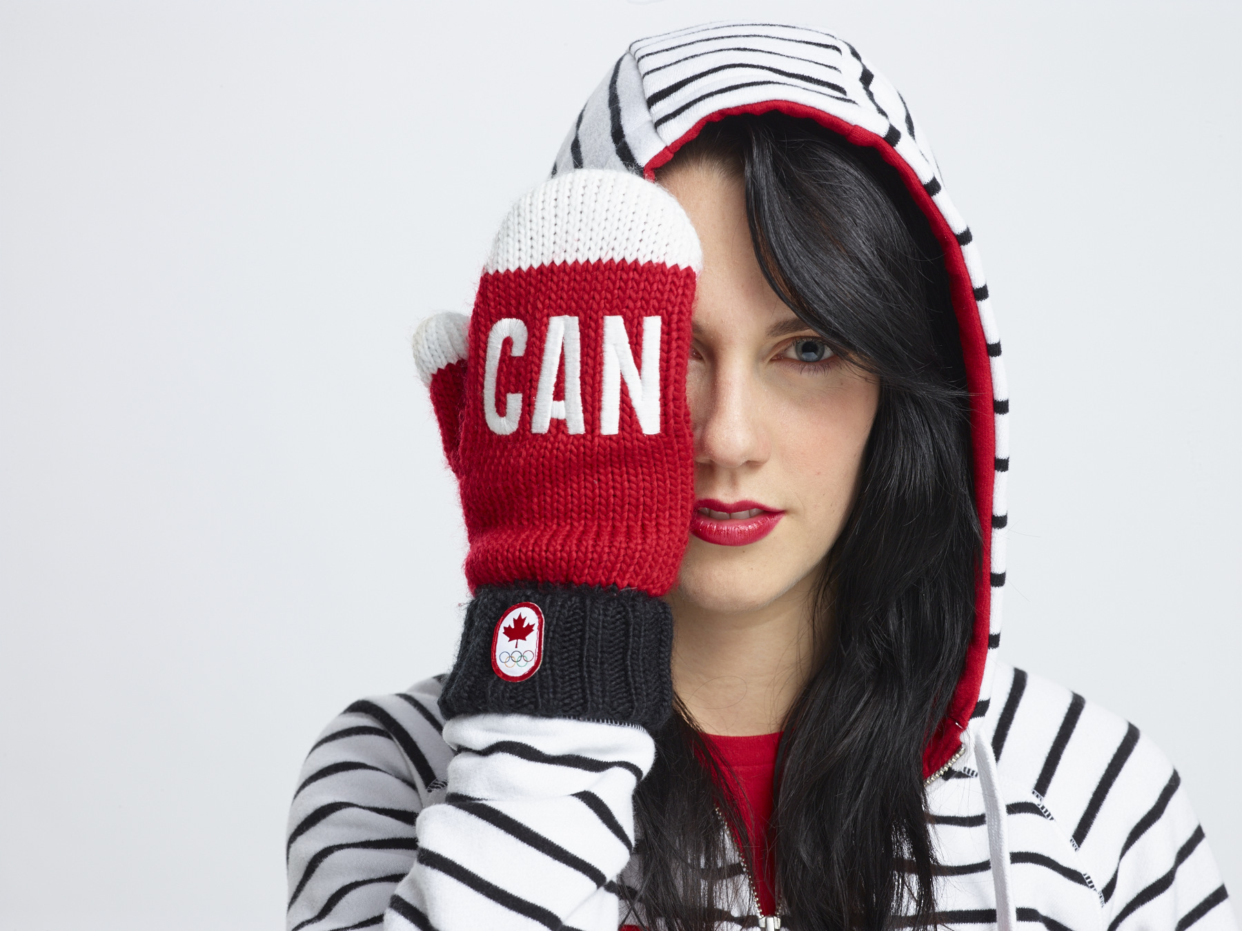 Les mitaines des Jeux de 2014 à Sotchi sont inspirées de la traditionnelle couverture à rayures de HBC. Le poignet est fait d’une bande noire et la pointe de la mitaine est blanche. Le mot « CAN » est brodé sur le dos de la main et la paume est décorée d’une feuille d’érable blanche.