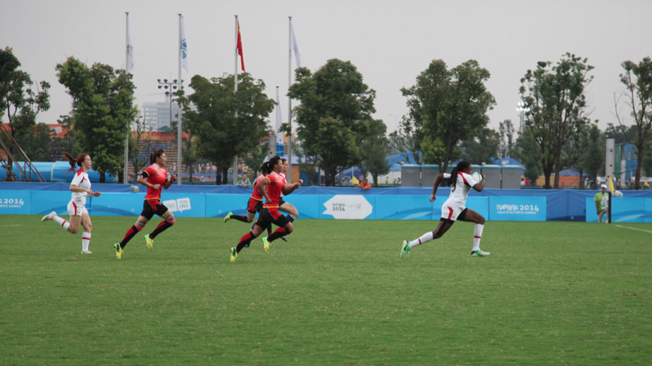 Résumé du match : Mardi soir, l’équipe féminine de rugby à sept a remporté une victoire de 26-19 sur la Chine en demi-finale devant une foule nombreuse de spectateurs du pays hôte.