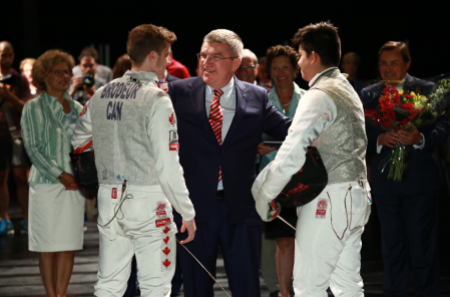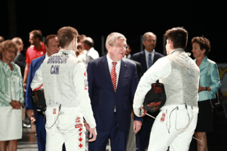 Thomas Bach visite le Centre d’éducation physique et des sports de l’Université de Montréal (CEPSUM), lieu de son triomphe olympique en escrime aux Jeux de ’76.
