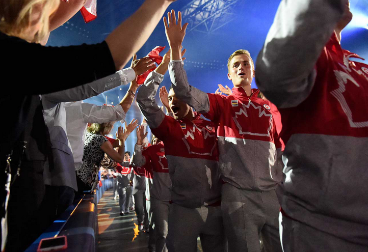 Le canoéiste Mark Oldershaw a guidé la plus grande délégation canadienne jamais assemblée à l’intérieur du Rogers Centre, renommé PAD Panam pour la durée des Jeux, dans le cadre d’une cérémonie haute en couleur imagée par le Cirque du Soleil.
