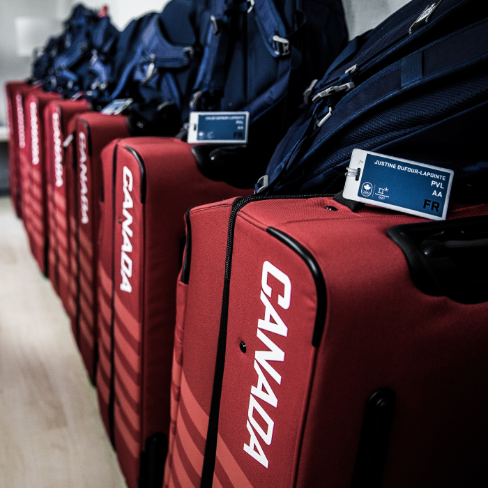 Un moment spécial de l’arrivée des athlètes consiste à mettre la main sur leurs vêtements de la collection olympique officielle de La Baie d’Hudson. Avec leur valise de vêtements dernier cri aux couleurs d’Équipe Canada, les athlètes seront prêts à entrer dans la course aux médailles avec style (chaussures de haute performance, gracieuseté d’Under Armour).