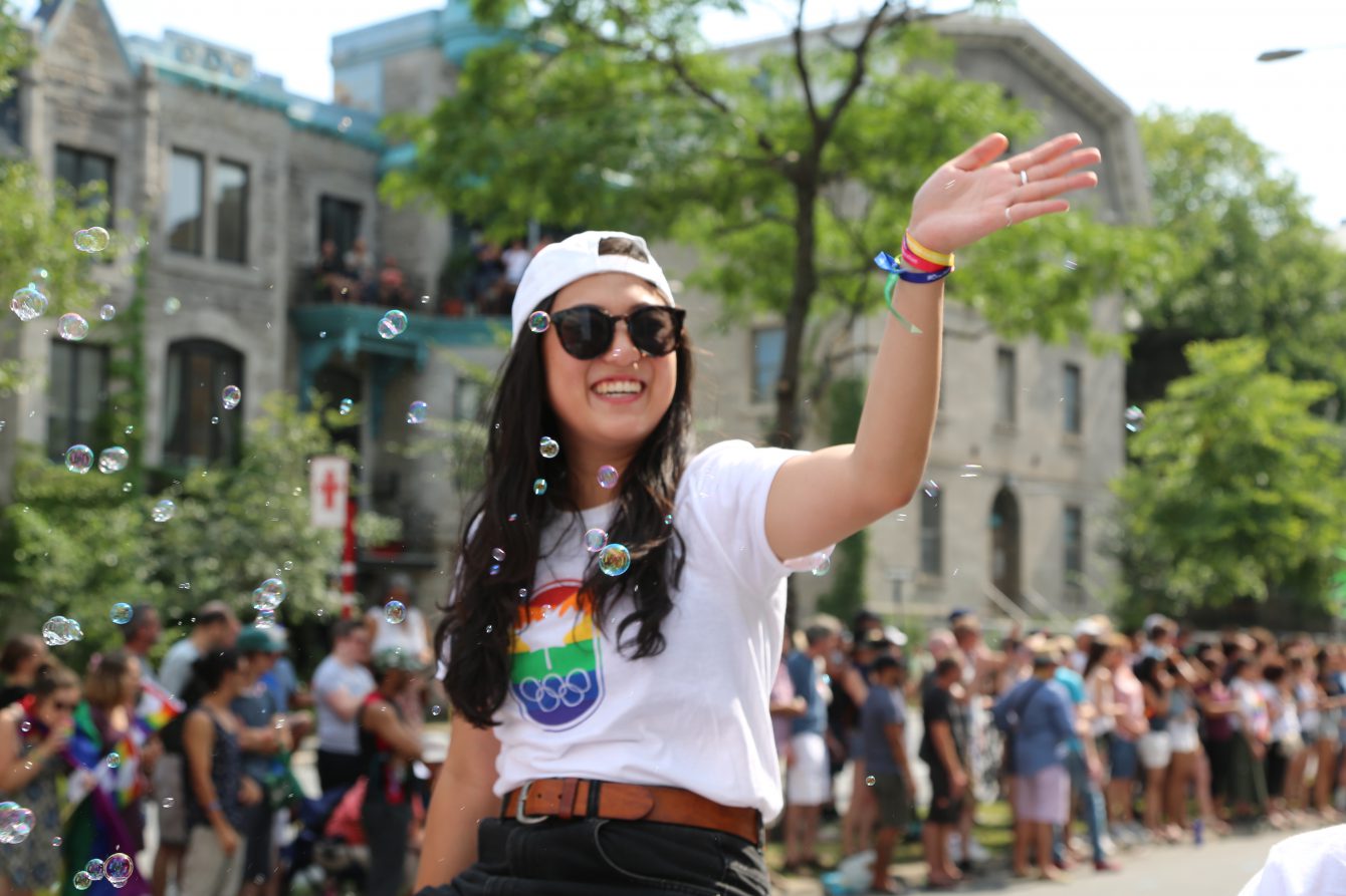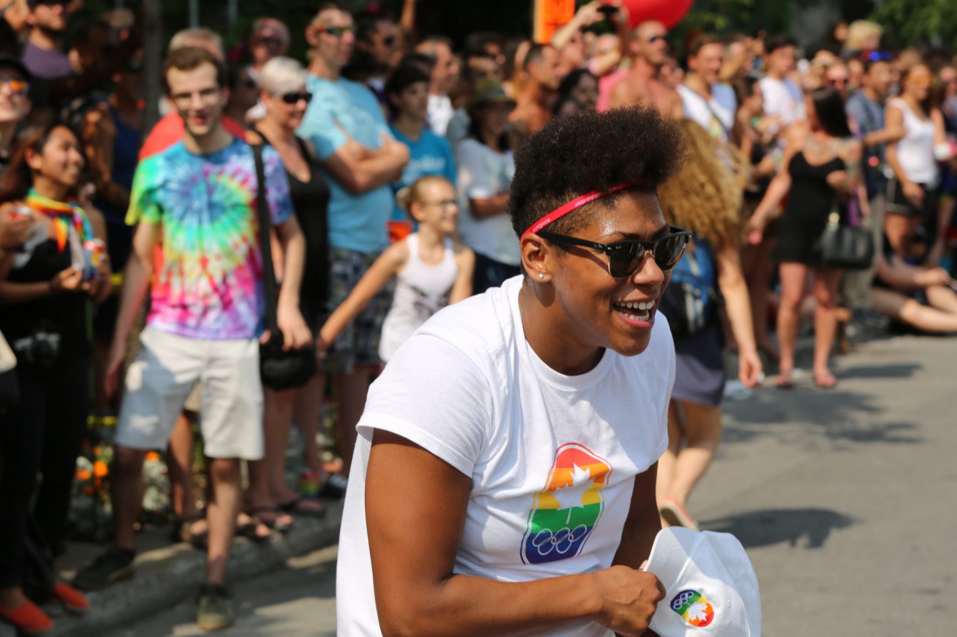 l’olympienne Alexandra Duckworth lors du défilé de Fierté Montréal, le dimanche 20 août 2017. (Photo: COC/Steve Boudreau)