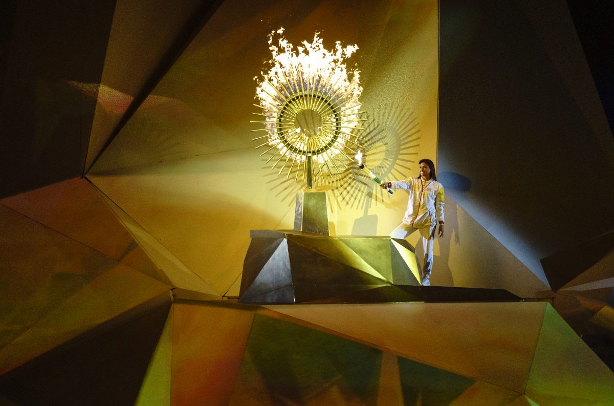 Ellie Black porte le drapeau à la cérémonie de fermeture aux Jeux panaméricains de Lima, au Pérou, le 11 août 2019. Photo : Dave Holland/COC