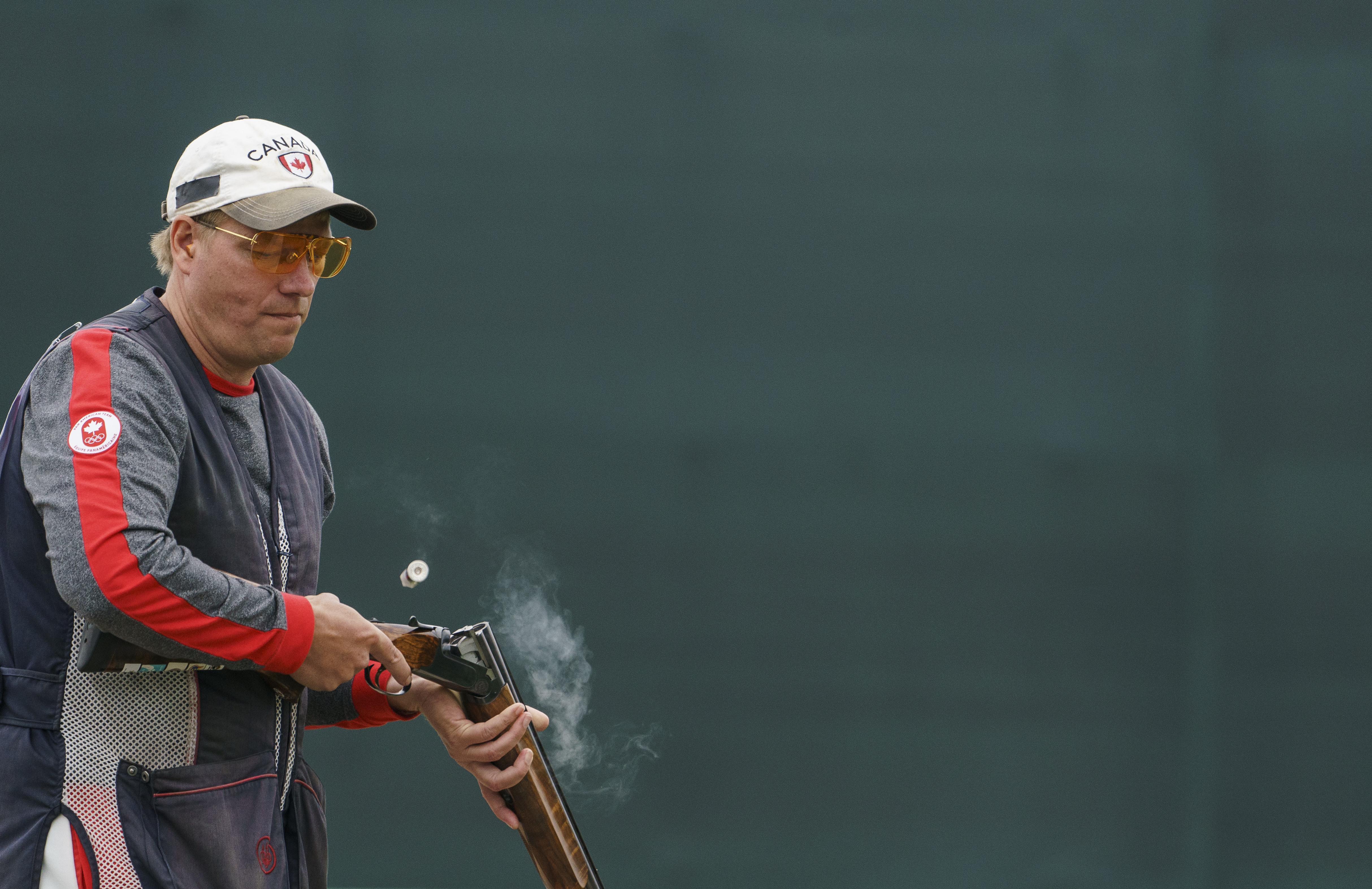 Curtis Wennberg pendant l’épreuve du tir à la fosse par équipes mixtes aux Jeux panaméricains de Lima 2019, le 31 juillet 2019. Photo de Dave Holland / COC
