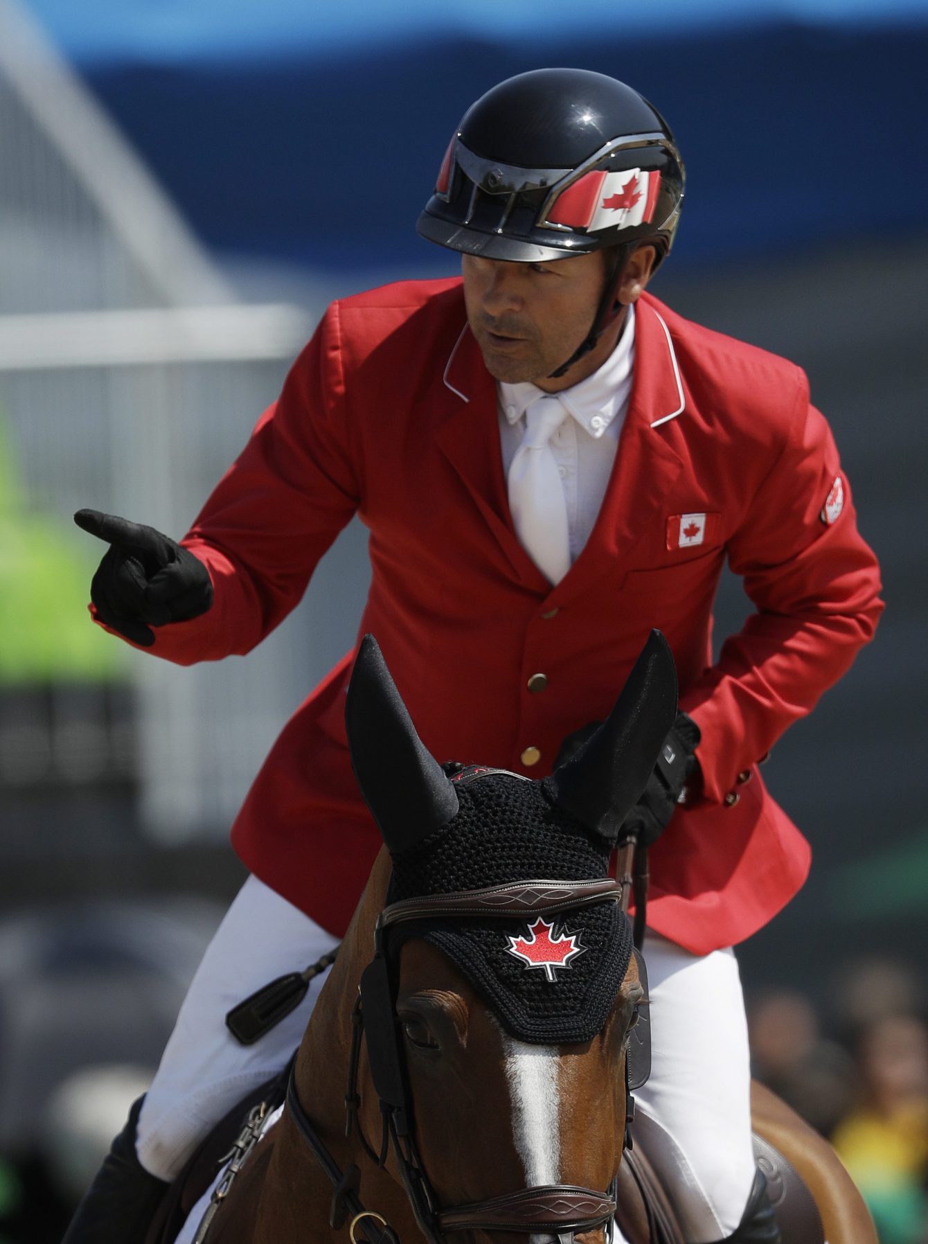 Eric Lamaze lors de la finale de saut d’obstacles aux Jeux olympiques de Rio, le 19 août 2016. (AP Photo/John Locher)