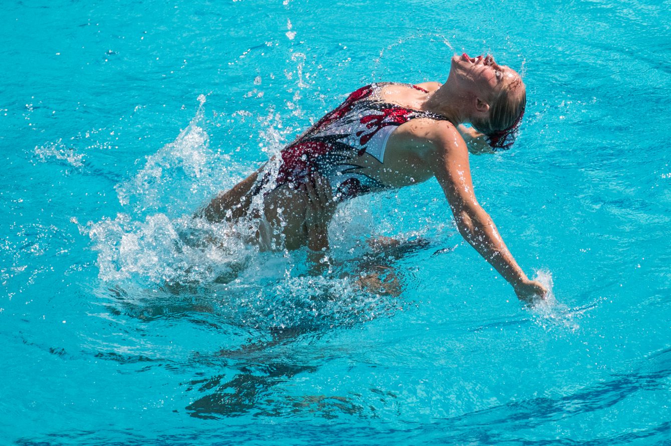 Jacqueline Simoneau et Karine Thomas lors de leur routine libre en nage synchronisée aux Jeux olympiques de 2016, à Rio. Photo du COC/Mark Blinch