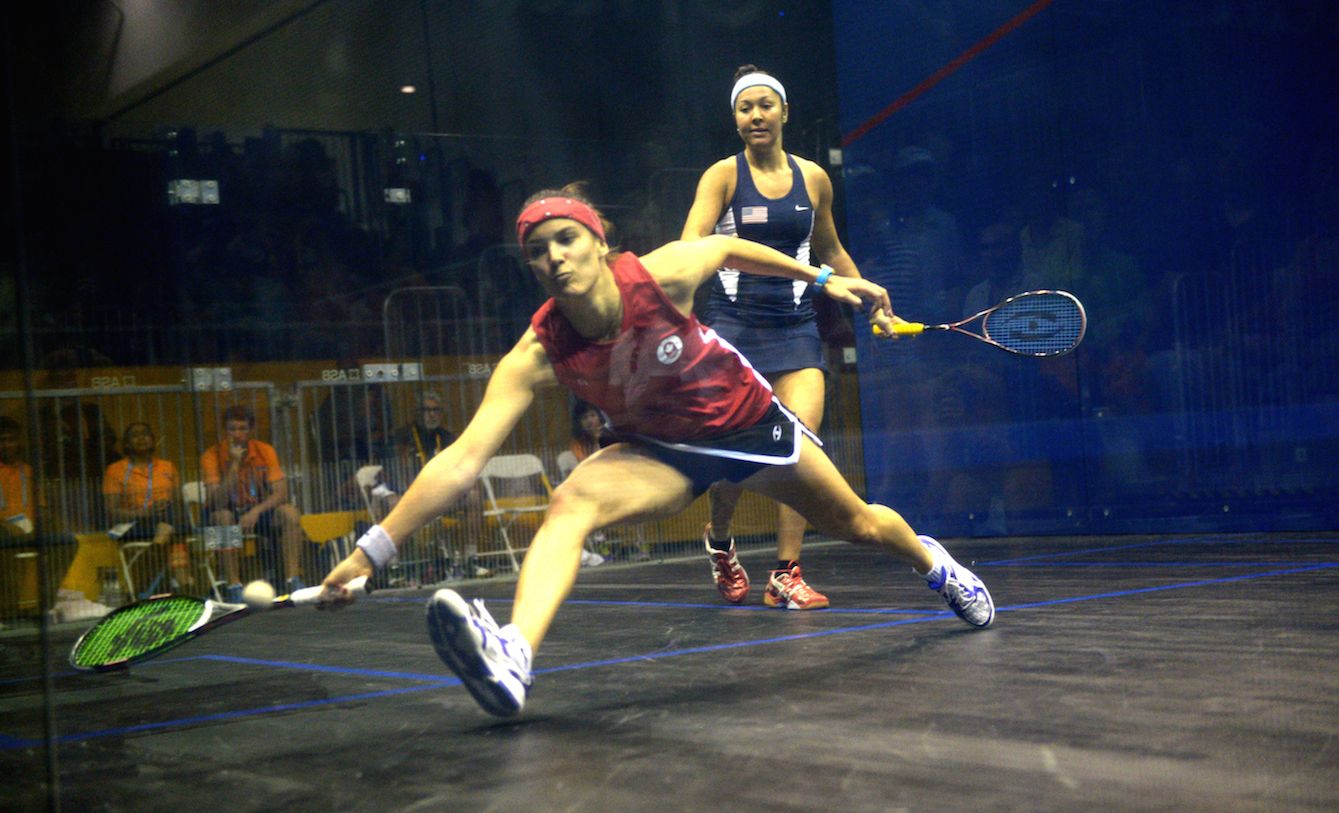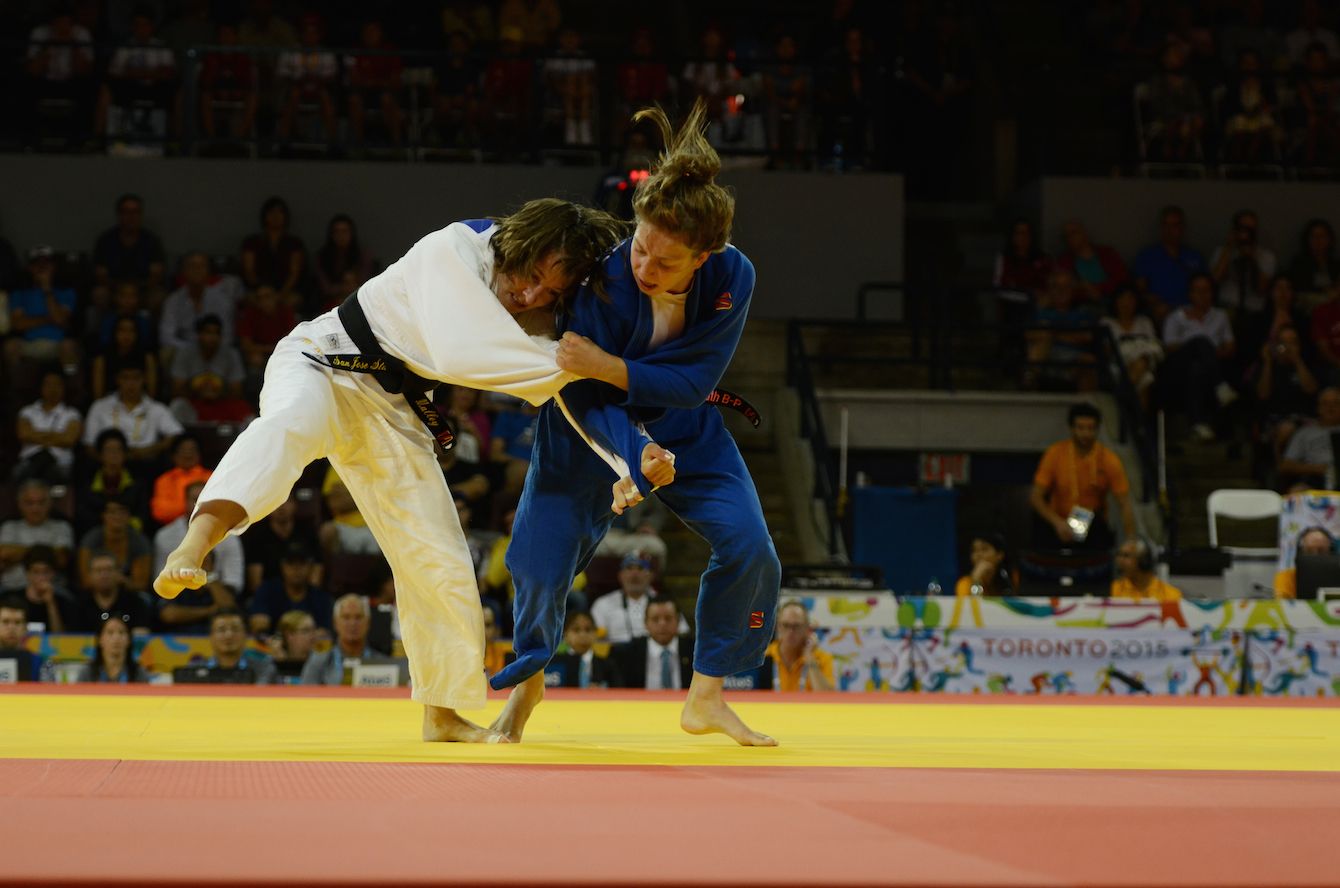 Emily Batty and Catharine Pendrel competing at the 2015 Pan Am Games.