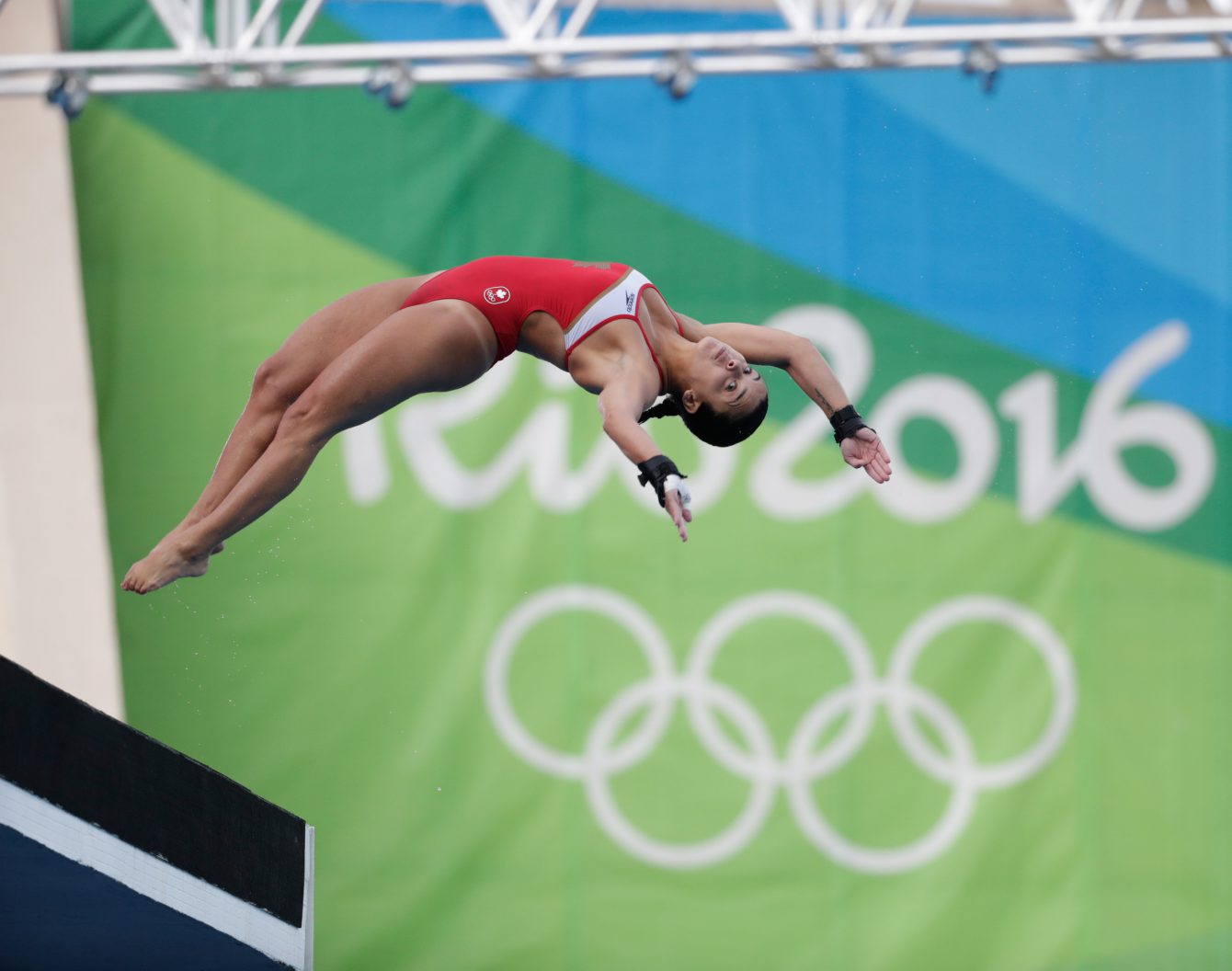 Meaghan Benfeito dives during the women’s 10-metre platform diving final at the 2016 Olympic Summer Games in Rio de Janeiro, Brazil on Thursday, Aug. 18, 2016. (photo/ Jason Ransom)